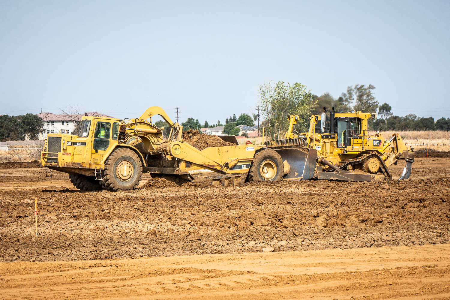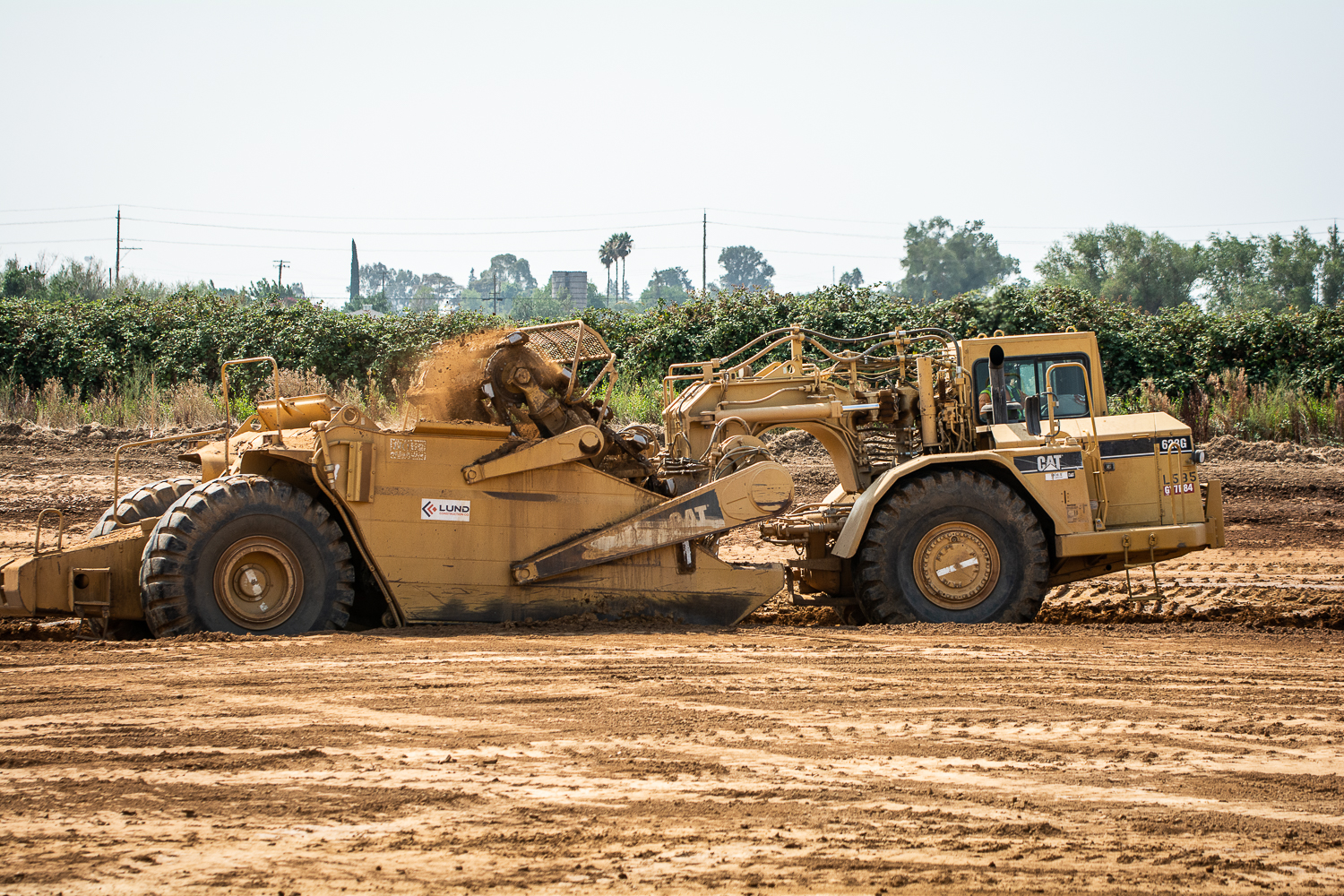 As part of the mass grading for this project, a 9-acre drainage basin was scoped to be constructed. However, prior to completion of storm drain improvements on this project, the basin became flooded due to adjacent agricultural operations. In order to complete the remaining storm drain, and deliver the project on-time to the client, our team quickly pivoted to overcome this unforeseen challenge while ensuring the best outcome for the project. A specialized bladder was mobilized to the project and installed to create a temporary dam. Once the bladder was filled, the Lund team was able to de-water the immediate area and complete storm drain installation so that the project could continue into the next phase of development and be completed successfully. Lund’s total project scope included 120,000 CY mass grading; 147 finished lots; 3,200 LF of storm drain installation, and post and cable fencing.